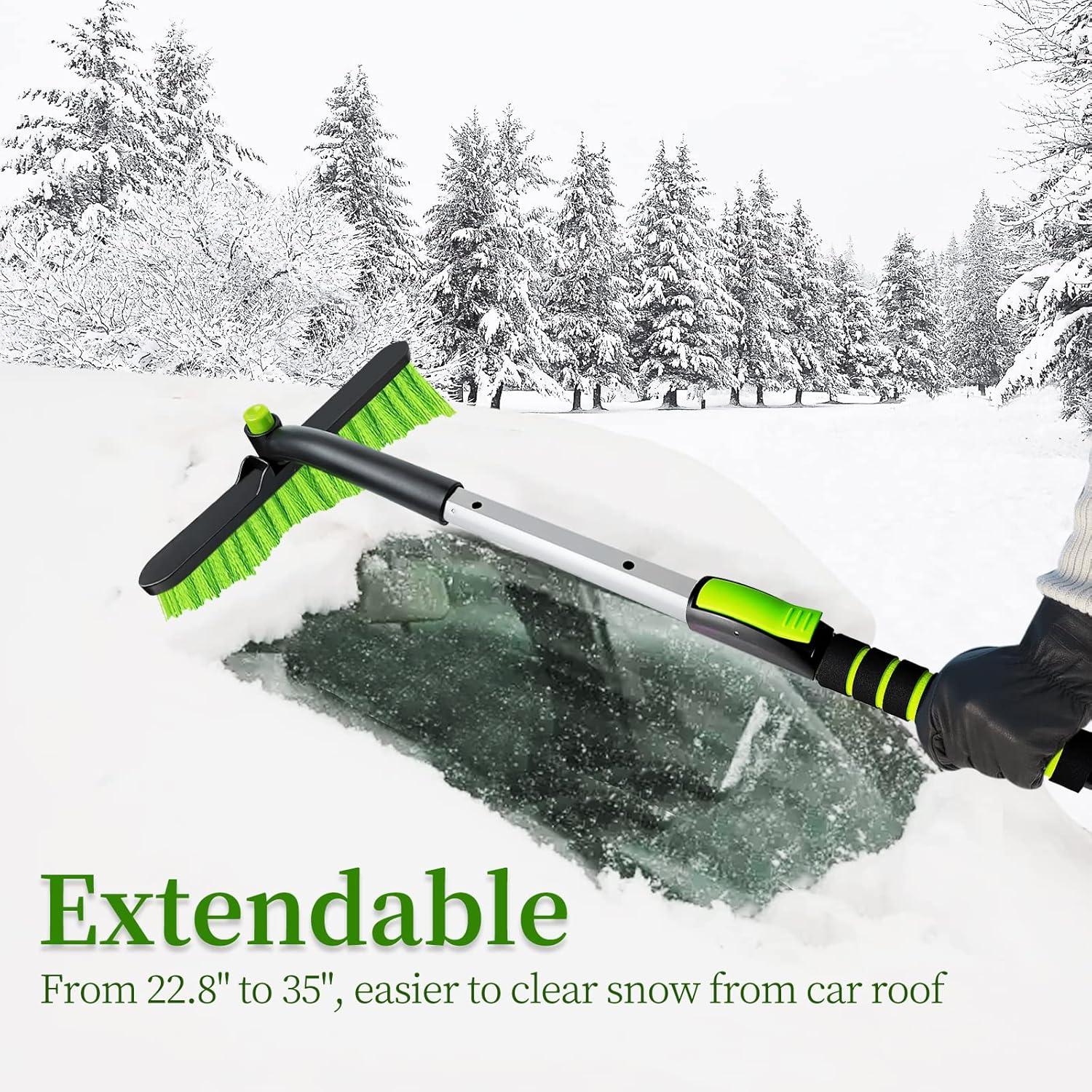 [Extendable Aviation Aluminum Alloy Rod] — The telescoping makes snow clearing a snap. Extended from 22.8″ to 35″, easily reach car roof for cleaning heavy snow.